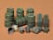 TAMIYA Kit #MM126. 1/35 Scale. Tamiya accessory kit of military Jerry Cans. The set includes nine U.S. and German Jerry cans, four buckets, plus three new and three dented barrels.